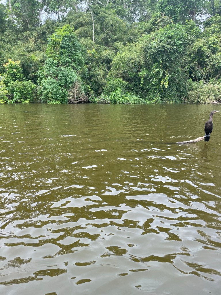 When we went out on kayaks on Sunday afternoon to go fishing and swimming in the river, the water, while not as warm as bath water, was the warmest body of water I’ve ever been in, with the exception of Flaming Gorge in August. To paddle amid huge trees and a greater variety of life in one place than I have ever seen before is something I’ve seriously wanted to do since childhood–and then to swim through it! This was one of the kinds of scenes that came to mind whenever I thought of South America, and now I was living it, while speaking Spanish almost exclusively! Down here, cumbia and other such music is some of the most delicious aspects of tropical America I’ve heard–and then there’s the rain forest itself that manages to rival all that!