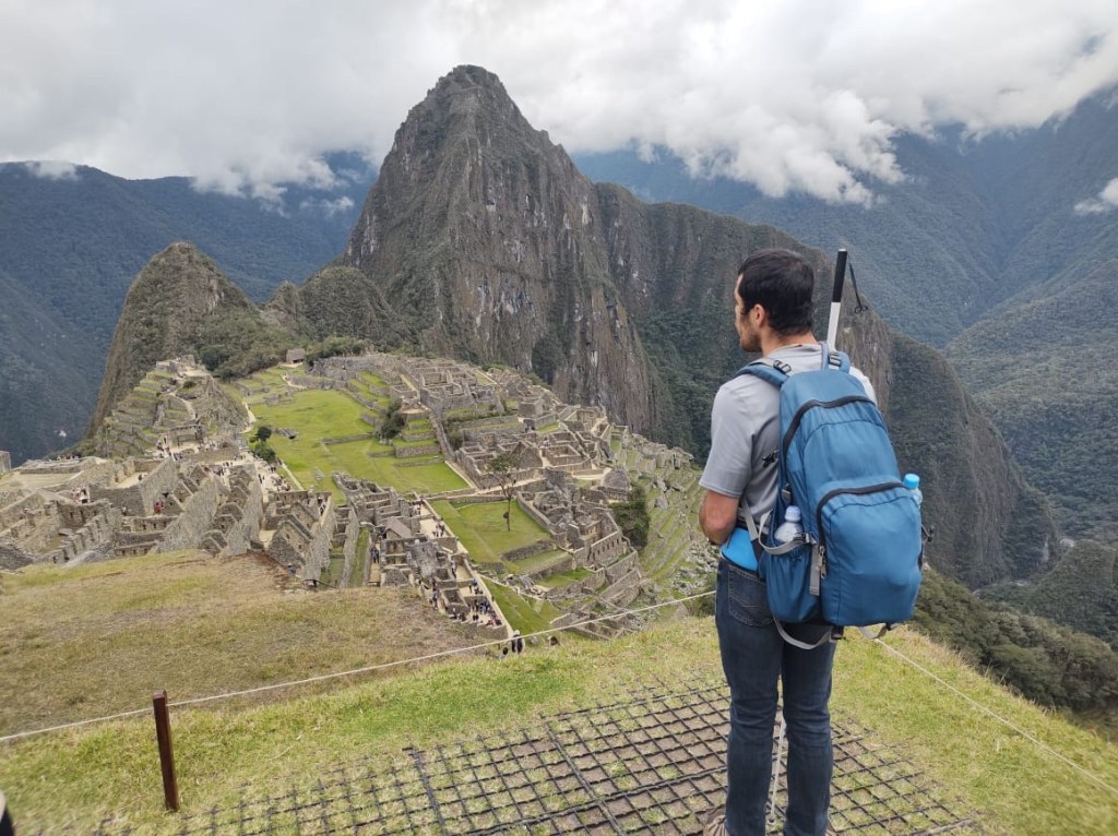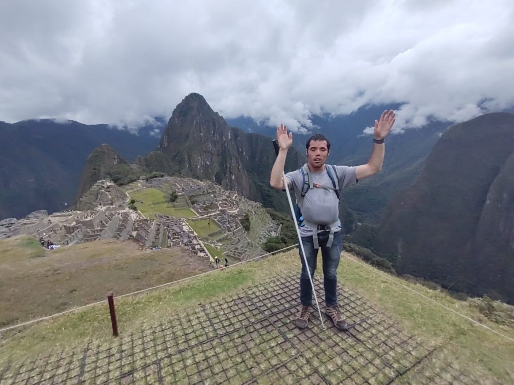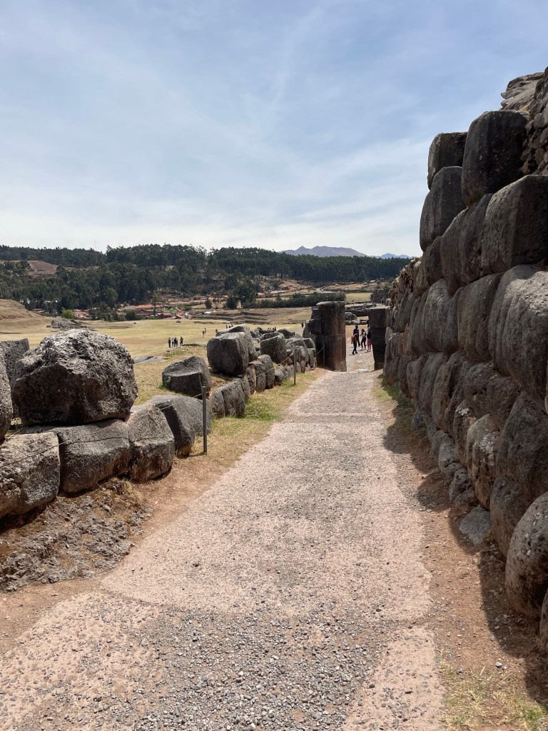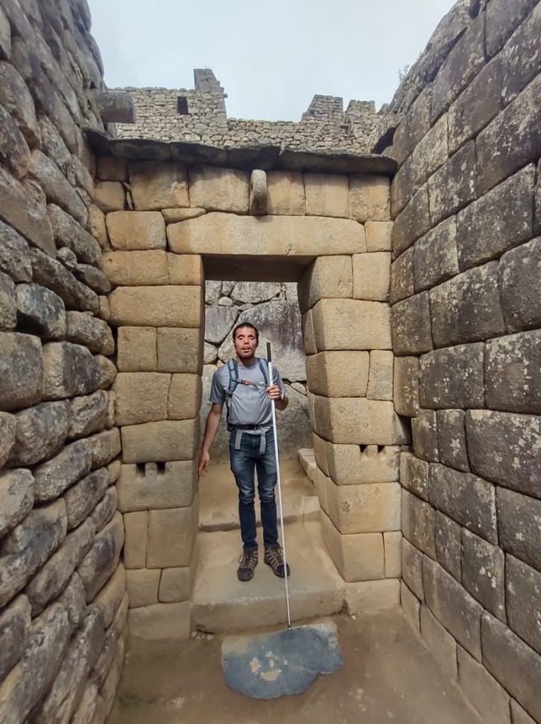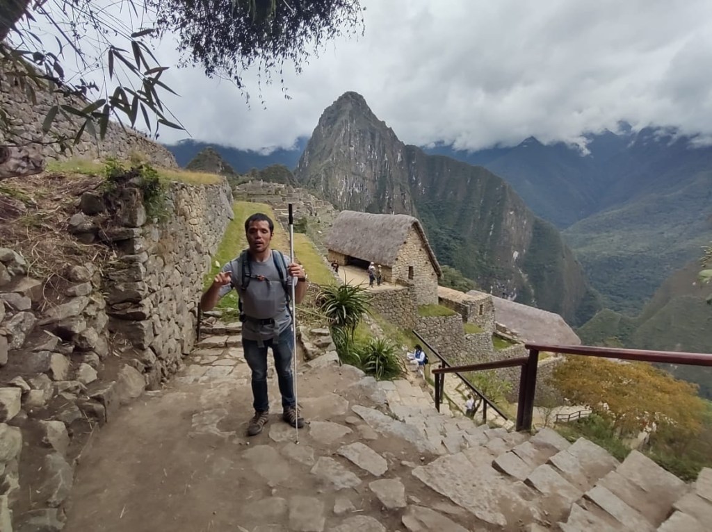 Machu Picchu the next morning was, to be honest, a lot of information all at once, and my questions were either lost in the tide of information or were met with, “Let me finish my speech.” I was given a book recommendation from which I hope I can refresh my memory, because I came here to learn as much as I could about this Inca citadel, not just to be there. What I do remember is that there is an agricultural center, a religious center, and an urban center, and they all face east toward the sun, which they worshipped. Ever COVID, Peru’s Minister of Culture decided to rope Machu Picchu off into sections. My circuit only included the urban center, which was still cool. The most memorable place in that center for me was the emperor’s house. The streets are even narrower than those in Cuzco, such that only one or two at a time could pass. The chacana is an important symbol in their culture that represents a bridge between their three worlds. The upper world is ruled by the condor; the underworld is ruled by the snake; and–I really hope I get this right!–the middle world is ruled by the fox. Machu Picchu has many levels. It’s unfortunate that we didn’t get to see all of them, but it was another step back into antiquity. Eduardo took many pictures of me and the surroundings; then we went to the outskirts of the city for my classic picture. Walking into the city, there was originally one platform, and on special occasions one would stand on this platform and participate in the ceremony of purification, a part of which included a naturally growing hallucinogen called, in English, the trumpet angel. As intrigued as I am by natural psychedelics, I didn’t give that plant a try. Eduardo also told me about this other place, whose name I know but won’t bother to spell for now, that is like Machu Picchu but with many more platforms with more elaborate designs.