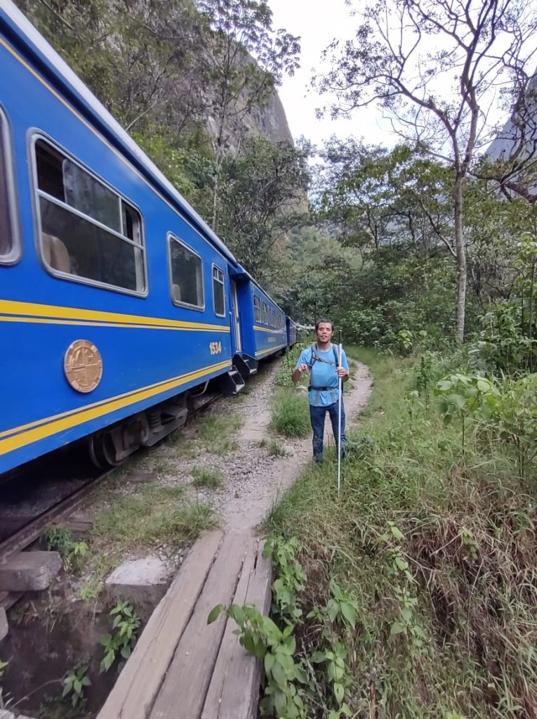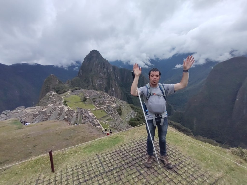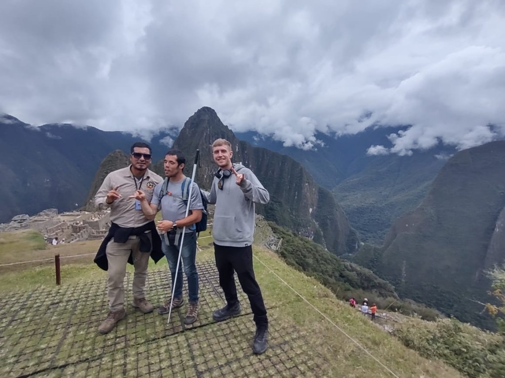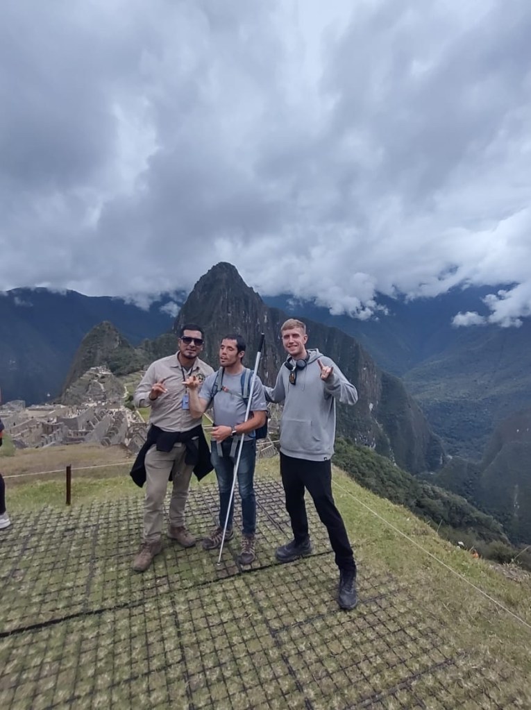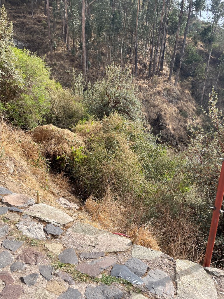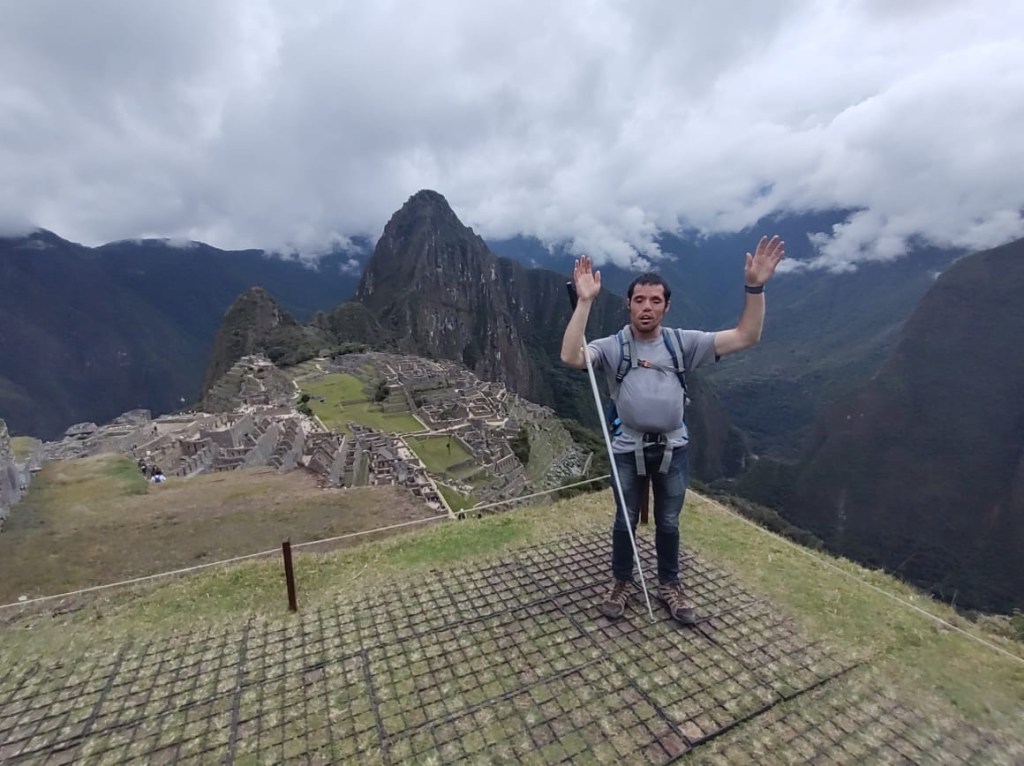 Machu Picchu the next morning was, to be honest, a lot of information all at once, and my questions were either lost in the tide of information or were met with, “Let me finish my speech.” I was given a book recommendation from which I hope I can refresh my memory, because I came here to learn as much as I could about this Inca citadel, not just to be there. What I do remember is that there is an agricultural center, a religious center, and an urban center, and they all face east toward the sun, which they worshipped. Ever COVID, Peru’s Minister of Culture decided to rope Machu Picchu off into sections. My circuit only included the urban center, which was still cool. The most memorable place in that center for me was the emperor’s house. The streets are even narrower than those in Cuzco, such that only one or two at a time could pass. The chacana is an important symbol in their culture that represents a bridge between their three worlds. The upper world is ruled by the condor; the underworld is ruled by the snake; and–I really hope I get this right!–the middle world is ruled by the fox. Machu Picchu has many levels. It’s unfortunate that we didn’t get to see all of them, but it was another step back into antiquity. Eduardo took many pictures of me and the surroundings; then we went to the outskirts of the city for my classic picture. Walking into the city, there was originally one platform, and on special occasions one would stand on this platform and participate in the ceremony of purification, a part of which included a naturally growing hallucinogen called, in English, the trumpet angel. As intrigued as I am by natural psychedelics, I didn’t give that plant a try. Eduardo also told me about this other place, whose name I know but won’t bother to spell for now, that is like Machu Picchu but with many more platforms with more elaborate designs.