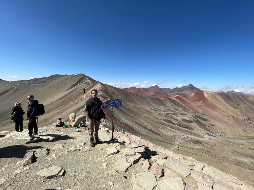 On the way back down, we stopped and rested as a group, and I bought chicharrón de alpaca and sweet potatoes. Darwin, our lead guide, told us that there are three rainbow mountains: this one, one in Argentina, and one in China. This one is the best because the rainbow, created by all the minerals, is the most visible. Ivan and I finished the mountain, and we all returned to Cuzco. It had been a good weekend. I had hiked sixteen thousand feet, the highest I’ve ever been.