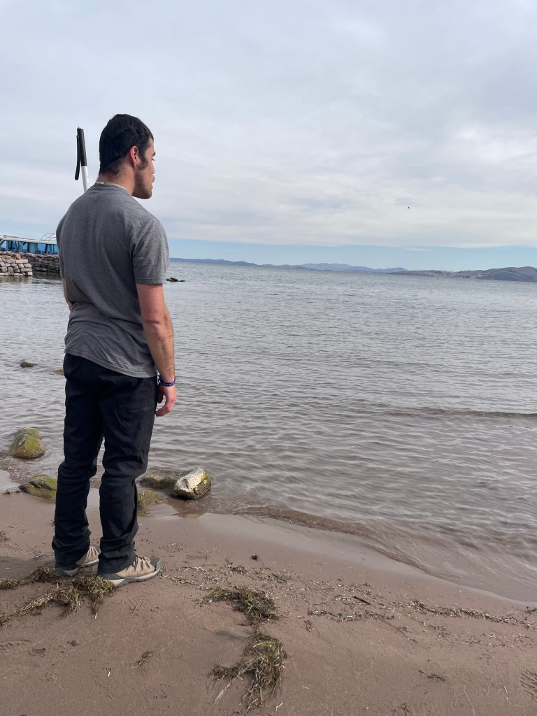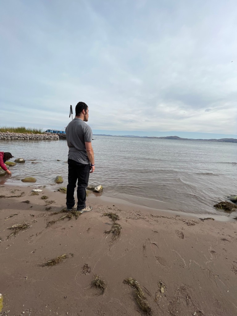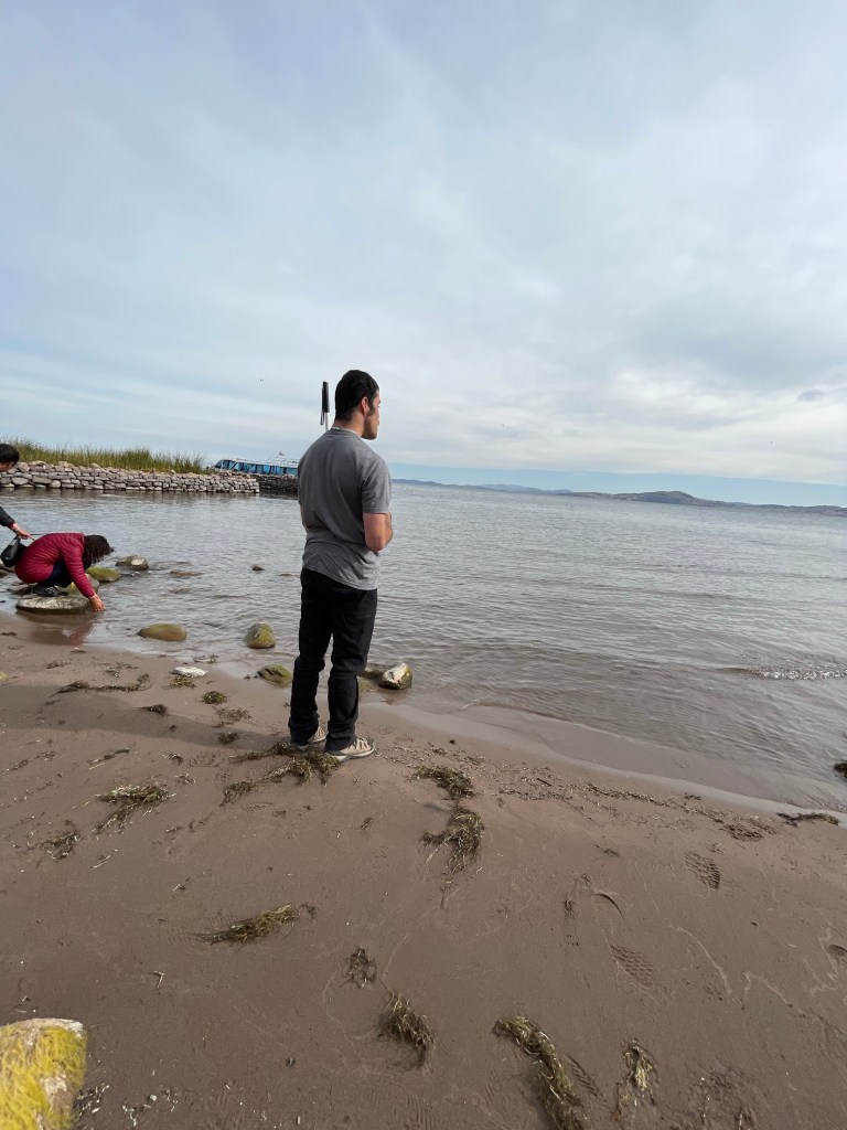On the island made by nature, we ate lunch with the local families that consisted of quinoa soup, homemade bread, trout, and matte de muña. Afterwards we visited the plaza of this island. It was the calmest plaza of the three I’ve been in. Everything is connected to, and especially in the case of the floating islands, depends on nature. Walter, our guide, was telling me as we walked around the plaza and through several famous arches that led out of the plaza and toward the shore, that here there is no attitude of materialism. The incredible thing is, I could feel that in everything about the islands. I felt perfectly content with what I had, who I was, and where I was now, and nothing else mattered. I thought about how I could maintain such a mind set as we sailed away from the islands and watched some waves. Experiences like this made me as determined as ever to figure out how I could bring about an attitude and a circumstance change for myself.