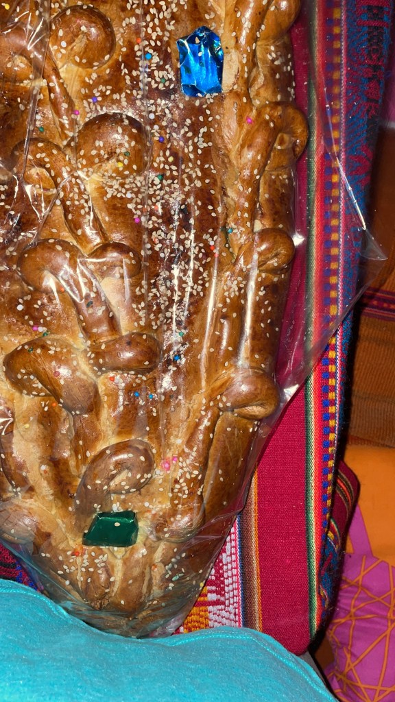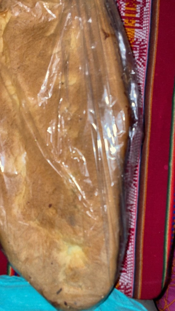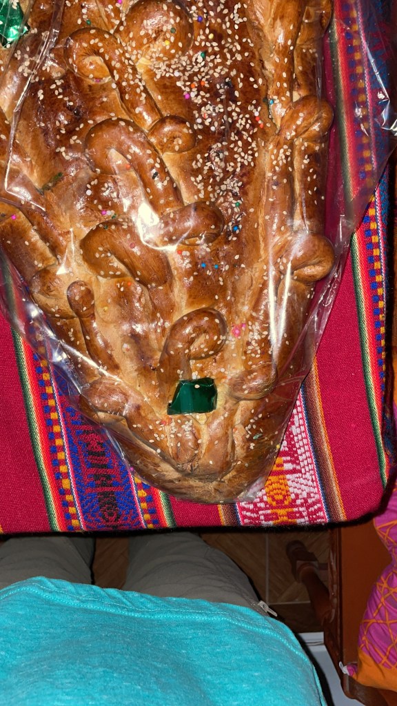 So I’ve always wanted to celebrate Day of the Dead in a Spanish-speaking country, and last week I got to do just that! On Tuesday, November 1, everyone who is taking Spanish classes at Proyecto Peru went with the Spanish professors to an older cemetery near the Plaza de San Fransisco. I enjoyed visiting the tomb of writers and artists. The tombs here aren’t like what we have in the U.S.: They are buildings with separate graves inside. That was the main thing we did for our excursion; after that we refreshed ourselves with some things that people were selling in the square and dolls made out of bread. The next day, I went twice to Mercado San Pedro, once to satisfy a fruit craving and another time to buy a bread doll. They told me it was a horse, but everyone else said it was either a doll or something else. In any case, I did not come prepared for the dilemma buying an artistic construction of bread would present: How does one eat a beautiful bread doll? Several people have told me that when they were kids, they played with their bread dolls–muñecas, or juajuas in Quechua–and let them grow stale. Well, that’s what’s happened to mine, so now we’ve got to find a way to sweeten it up again.