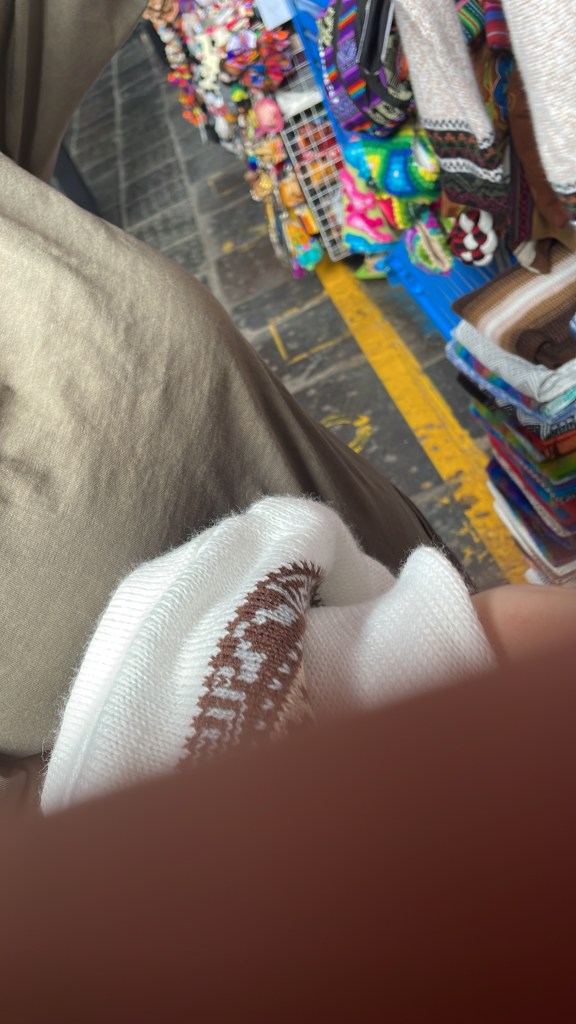 She then proceeded to try to sell me one of her hats. I honestly might have bought one, because it’s Cuzco, and I didn’t know of anywhere else I could get something like that; but (1) I don’t wear hats very often, and (2) I hadn’t bought any money. I told her this, but then she was like, “Why won’t you pay for a hat?” So I had to tell her again–and once or twice more.