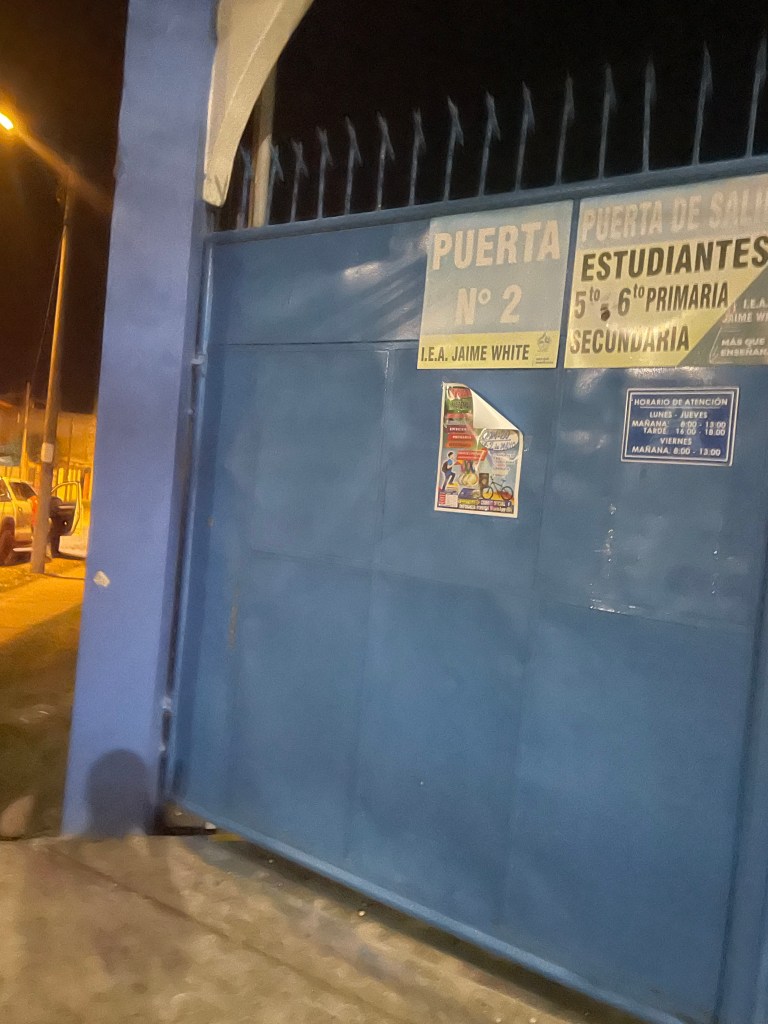 On Tuesday, the day after I got back from Piura, I went to Colibri, determined to go out with a bang! This resolve led me to hang out a lot at the desk that one of the lead teachers used. It was an ideal spot, because a lot of other volunteers liked to hang around there, too. Kids would come there, and Elizabeth, the teacher who used it, would often go off to help them. If she couldn’t, or if one of us could, we would go off with the kid who needed help or needed a bathroom break. I went home from work that day quite pleased with myself. Perhaps I had finally figured this thing out.