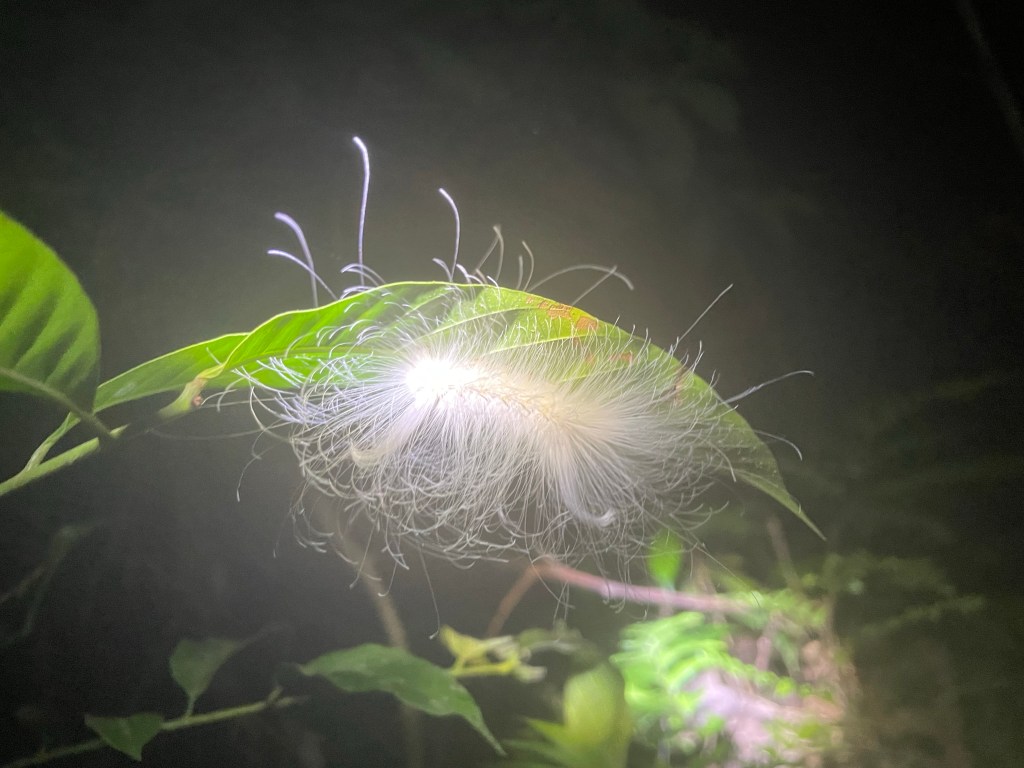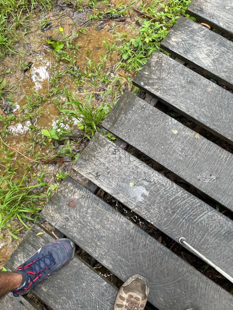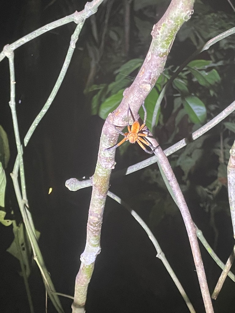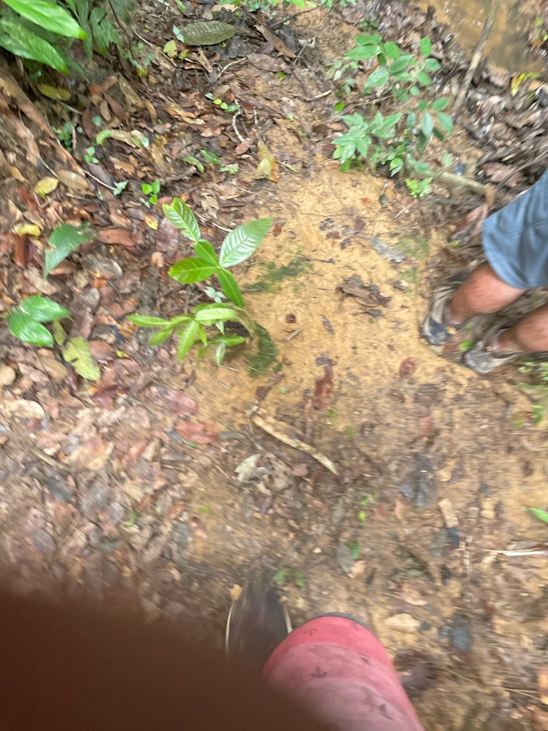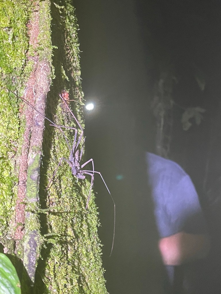 Monday was our last day here. After breakfast, after I had to strongly insist to my guide and the other person that I in fact could and should be a part of the group and not off on my own with the private guide, we set off on a sweaty, sticky, wet, tangled, wonderful hike. As much as I appreciated my guide’s elaborate explanation of what was around us, I also just wanted to be in it, and so I managed to a great degree to block out people around me and just bask in everything I could hear and smell and see and feel–the sunlight filtering through the canopy, sometimes no light at all, and even the bugs (I had started out virtually untouchable this morning by virtue of my repellent, but by the afternoon that was no more). For those who know me, you know that hiking is one of my favorite things to do, and some of you, if you are reading this,  will remember going on hikes as a group of us once a month on weekends throughout this past summer (we met weekly during the evenings throughout the fall and spring semesters). You might be thinking, as some people have commented to me, “Man, I wish I were there.” As we hiked around deep in this beautiful, exotic world, I started to think about the things I miss about home, because the end is close, and to be honest, I miss being able to share experiences with familiar people more than anything else. It’s cool to pick up acquaintances on the fly, but seriously, I thought about how much I wished I were sharing this with people with whom I’ve done things like this on a regular basis, where I don’t have to explain myself from scratch every single time, where we can just be ourselves. So, to flip the switch, in that fanciful moment I dearly wished you were there, all logistics satisfied.