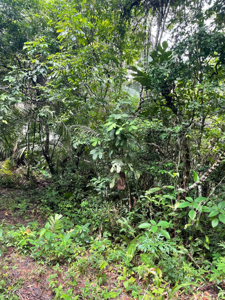 When we went out on kayaks on Sunday afternoon to go fishing and swimming in the river, the water, while not as warm as bath water, was the warmest body of water I’ve ever been in, with the exception of Flaming Gorge in August. To paddle amid huge trees and a greater variety of life in one place than I have ever seen before is something I’ve seriously wanted to do since childhood–and then to swim through it! This was one of the kinds of scenes that came to mind whenever I thought of South America, and now I was living it, while speaking Spanish almost exclusively! Down here, cumbia and other such music is some of the most delicious aspects of tropical America I’ve heard–and then there’s the rain forest itself that manages to rival all that!