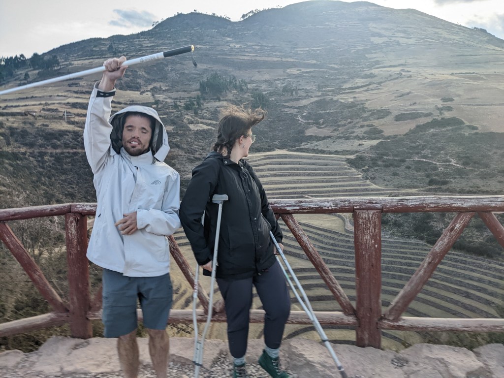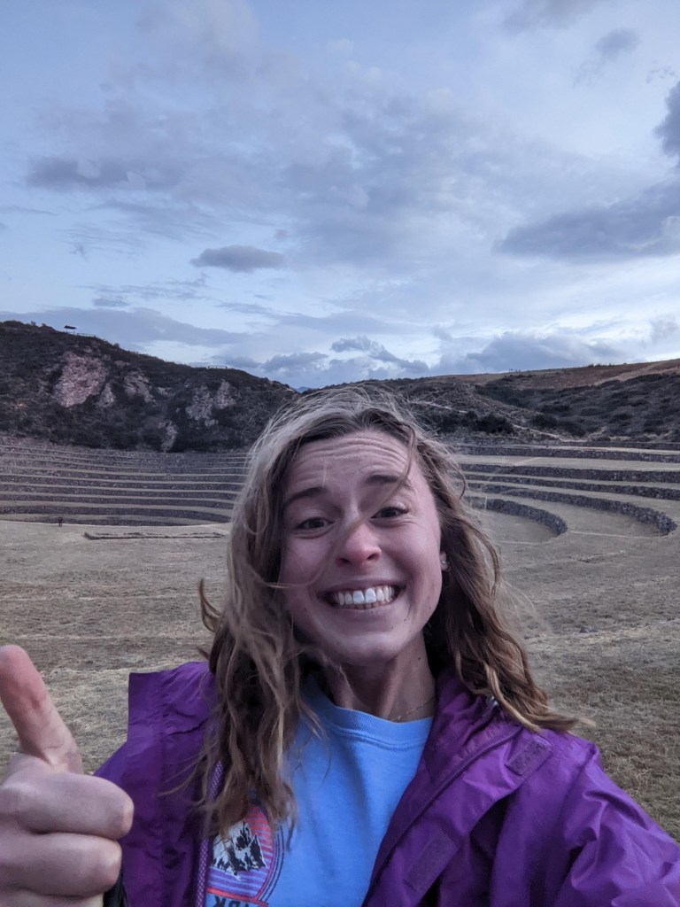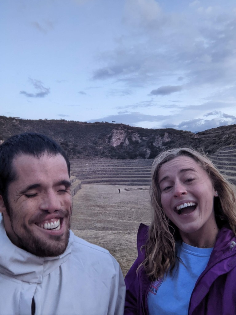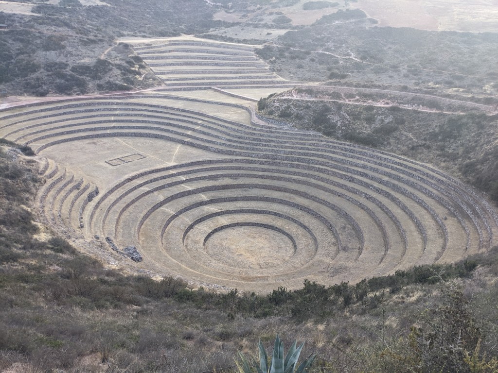 The next Saturday, we went on a road trip through the Sacred Valley. Our first stop was Pisaac, where we ate empanadas and visited what looked like a military fortress on the outskirts of town. Further on we hiked some terraces, and we ended at a place called Muray. This is where there are terraced rings within rings, to facilitate microclimates in which former peoples planted various things before sending them far and wide. We went on a good day, because we didn’t encounter a lot of tourists, which was why we decided to road trip in the first place. Again, there will be a photo dump when I figure out our shared album.